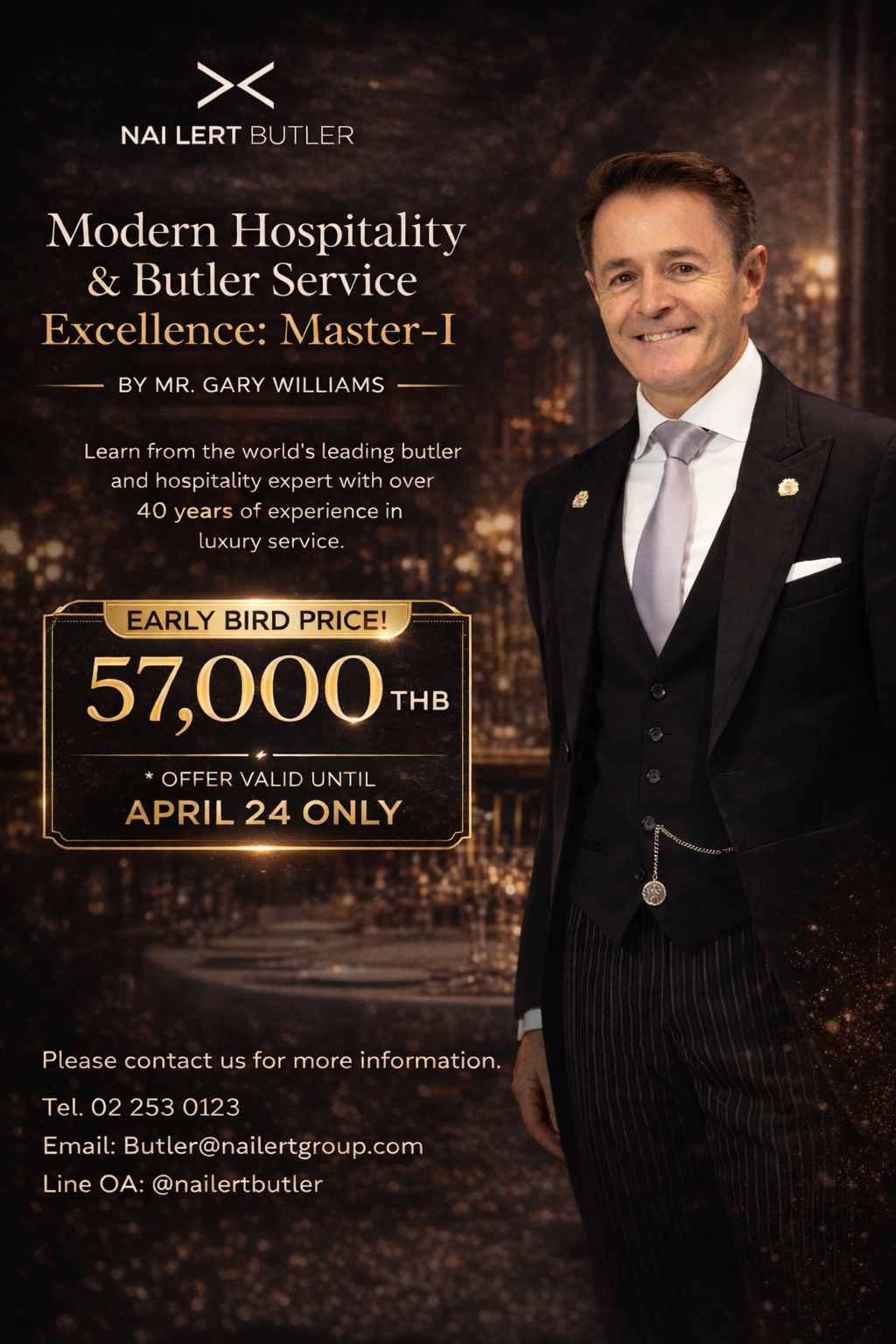 The Modern Hospitality & Butler Service Training Excellence, Master I. A 5-day intensive program led by Mr. Gary Williams, Principal of the British Butler Institute. Discover the art of world-class butler service and modern hospitality in an immersive professional training experience.